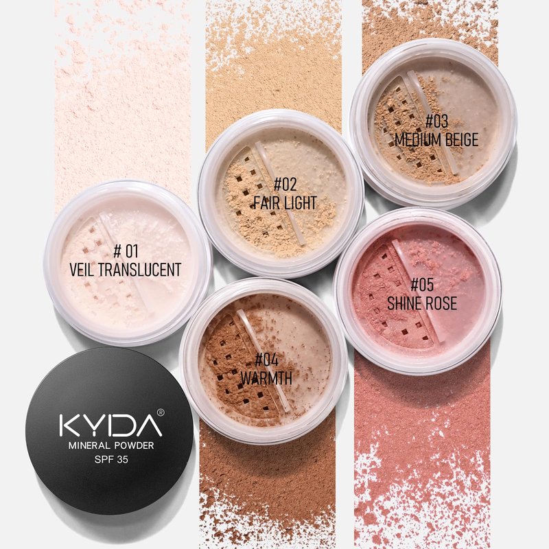 - KYDA MINERAL POWDER FOUNDATON- our mineral powder provides a sheer to full coverage that creates a natural glow makeup finish with a ultra-fine pearl mica, effectively improves skin and creates a perfect base makeup effect. Note: This link does not include the brush.