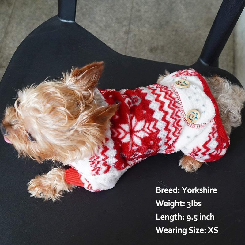 - Dog pajamas in classic snowflake printing is made of soft material, very comfy to wear. Pullover design dog pjs, easy to put on and off.