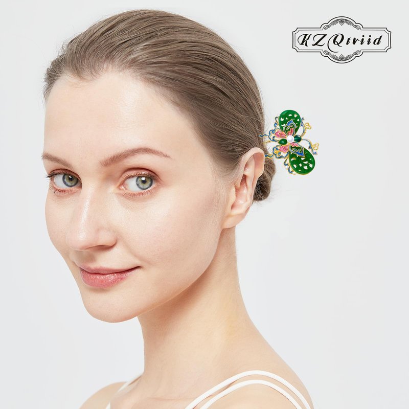 Elevate your hair game with KZQtriid Hair Accessories, featuring a vintage handcrafted design in 14k gold plated copper. This exquisite hair chopsticks set for women includes a beautifully detailed colour enamels jade butterfly U-shape hair stick and a matching hair clip. Perfect for securing any hairstyle, these elegant hair accessories add a touch of sophistication and charm to your look, ideal for both casual and special occasions.