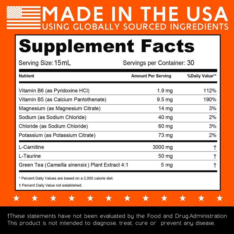 L-Carnitine Liquid 3000 mg Supplement with Green Tea Extract & Taurine - Energy & Muscle Recovery Support - 30 Liquid Packs