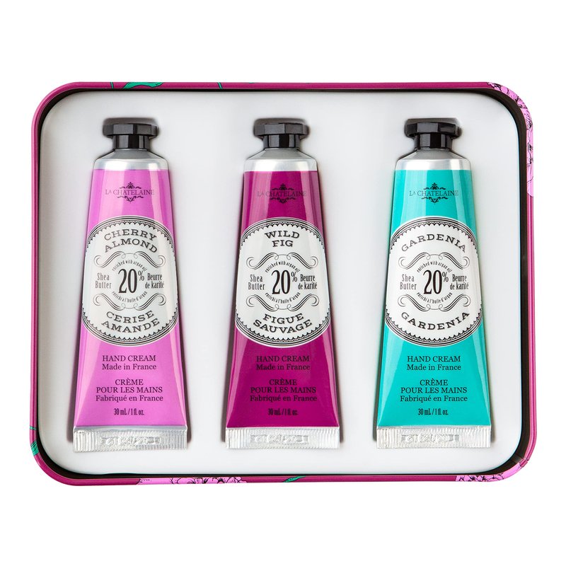 La Chatelaine Hand Cream Gift Set for Women, Hand Lotion for dry cracked hands, Travel Size, Natural Hand Cream Made in France with Organic Shea Butter (Cherry Almond, Wild Fig, & Gardenia) 3 x 1 fl