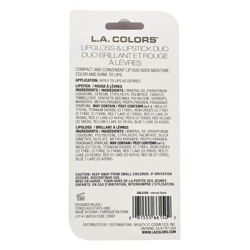 L.A. LA Colors Lip Duo Lipstick Lip Gloss Lipgloss 2 in 1 (ETERNAL FLAME)