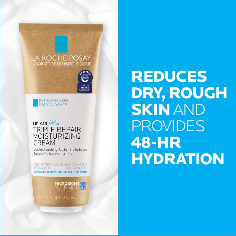 - This triple repair body cream moisturizer (formerly Lipikar Balm AP+) is clinically shown to reduce dry, rough skin and provide 48 hour hydration. Fragrance free suitable for body and hands. New sustainable packaging with 60% less plastic.