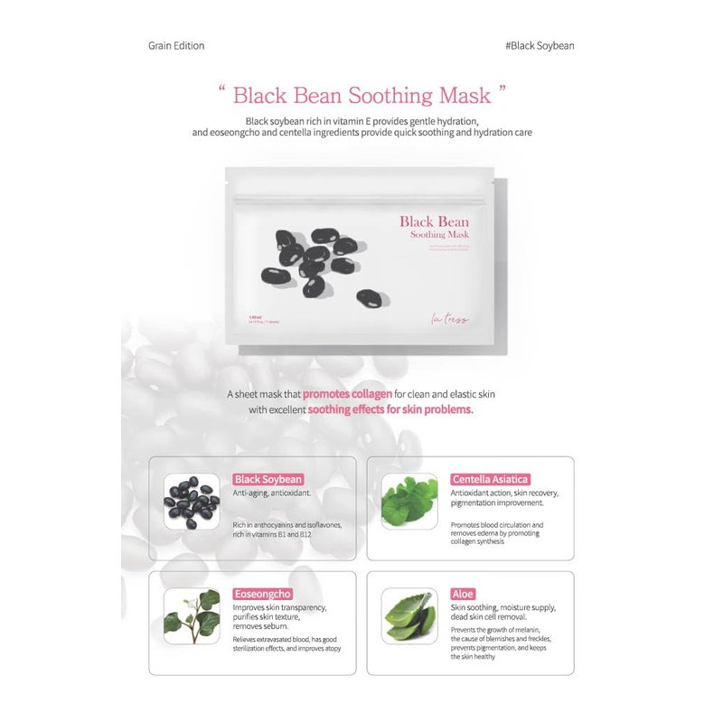 LA TRESS Black Bean Soothing Korean Face Mask, Korean Beauty Skin Care (7 Sheets)