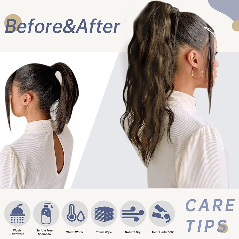 - 【Convenient for any occasions】LaaVoo human hair ponytail extension is perfect for dating, daily use, party, concert, wedding, sport, holiday and so on. Healthy with natural hair shine, and change your hair style to be energetic and neat. Just use seconds to wrap it around your ponytail and say good bye to the expensive hairdressers!