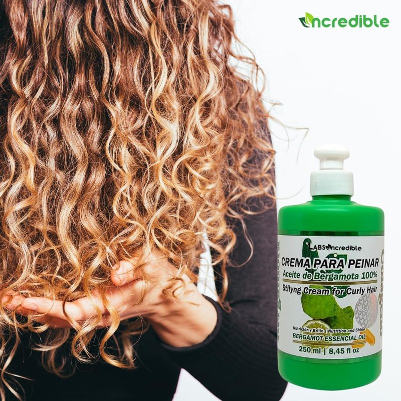 LABS INCREDIBLE Bergamot Oil Styling Cream for Curly Hair – 100% Natural Bergamot Oil – Nutrition & Shine – 250ml (8.45 fl oz)
