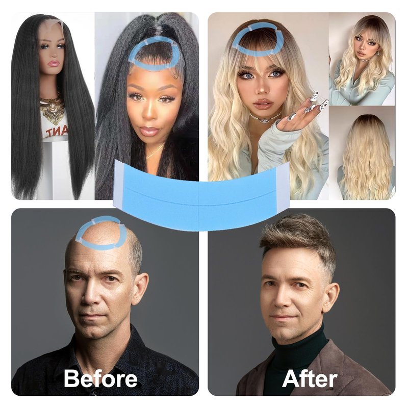 - 【Usage】 Apply the blue side to the wig and the white side to the scalp. Before applying, make sure the wig and scalp are clean and dry. When applying, press gently and fix to ensure a firm fit.