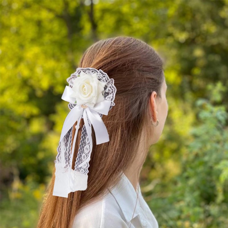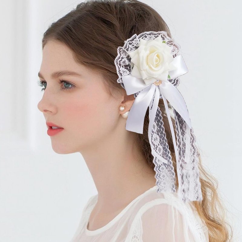 Lace Rose Hairpin Vintage Handmade Headwear Flower Balls Hair Decor Bowknot Hair Clip Name:Lace Rose Hairpin