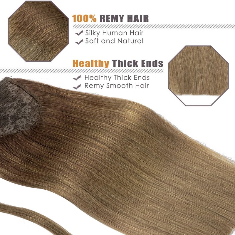 - ♥【Easy Install & Unique Design】— The Wrap Around Human Hair Ponytail Extension Comes with An Easy Install Clip-in Comb and Magic Paste with Hair Ties. It's Easy to Use! Just Clip In and Wrap It Around Your Ponytail to Get that Instant Length. This Ponytail Extension Has a Unique Hair Tie Design to Look It Like Your Real Hair. Much Lighter than Synthetic Hair. No One Knows Your Little Secret!