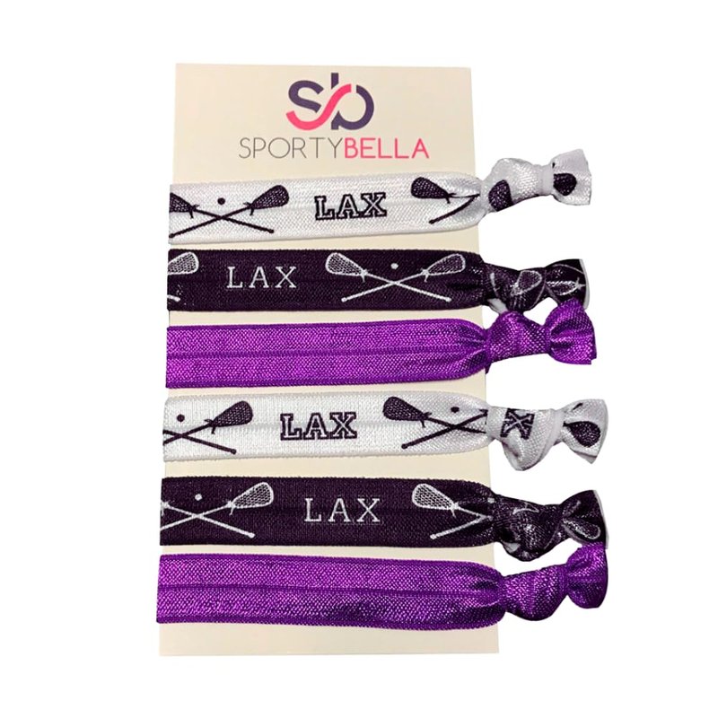 Lacrosse Hair Accessories for Girls (Purple) No Crease Girls Hair Ties or Hair Elastics, Hair Accessories with Lacrosse Stick Design, Hair Tie for Lacrosse Players (6 pcs) - by SPORTYBELLA