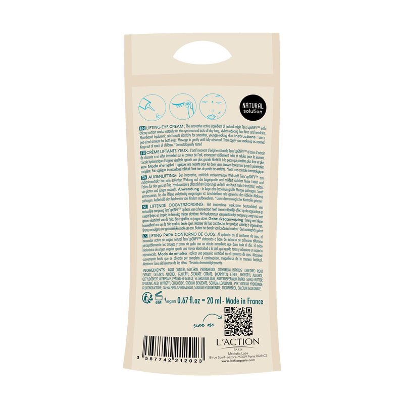 L'Action Paris Lifting Eye Cream, Natural Eye Cream with Chicory Extract for Fine Lines and Wrinkles, Plant-Based Hyaluronic Acid Cream Boosts Elasticity and Smooths Undereye Skin 20ml