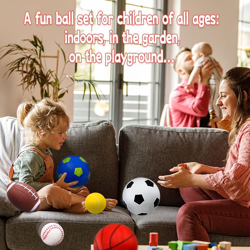 - CHILDREN LOVE IT-Value Pack 7-piece sports ball set, perfect for your child's ball pit, play tent, crawl tunnel, playhouse, playpen, bounce house, pool or bathtub. Different sizes of sports balls, 2.5-7 inches in diameter, are phthalate, lead and BPA free, providing a worry-free play experience for babies and toddlers. Make playtime super safe, super soft, and super fun!