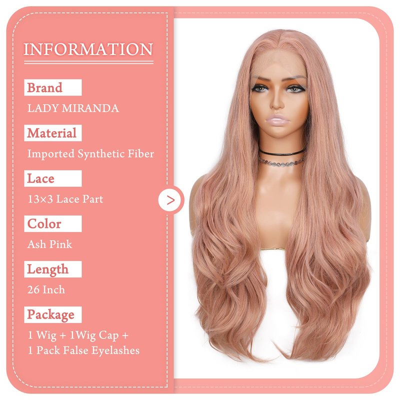 Lady Miranda 26 Inch 13×3 Ash Pink Synthetic Lace Front Wig HD Lace Front Wigs 180% Density Synthetic Lace Front Wigs Pre Plucked Natural Lace Front Wigs Synthetic Hair For Women (26 Inch, Ash Pink)
