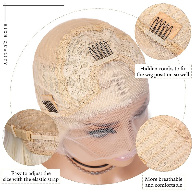- Comfortable to Wear:The blonde lace front wig has breathable rose net cap and that will make you feel comfortable when you wear the blonde white lace front wig. You can’t see any of the cap or wefts underneath. And this platinum blonde wig has adjustable straps to fit most size/shape heads, average fit 21-23 inches head circumference.