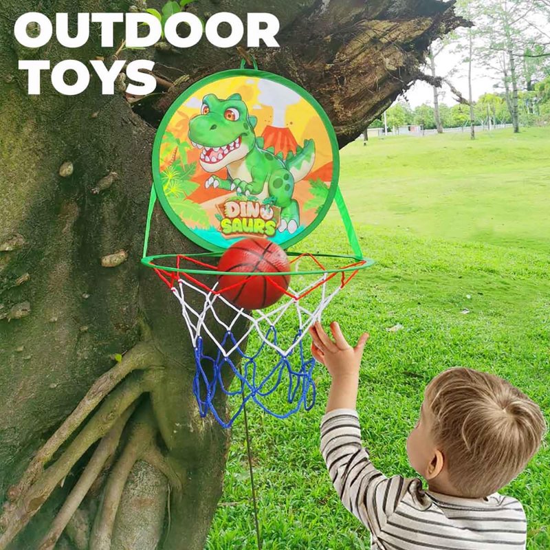 LAFALA Basketball Hoop, 14" Mini Basketball Hoop for Toddler Indoor Play Dart Board for Kids 2 in 1 Toddler Toys Birthday Dinosaur Party Favors Basketball Hoop for Kids 3,4,5 Years Old, Green T-rex