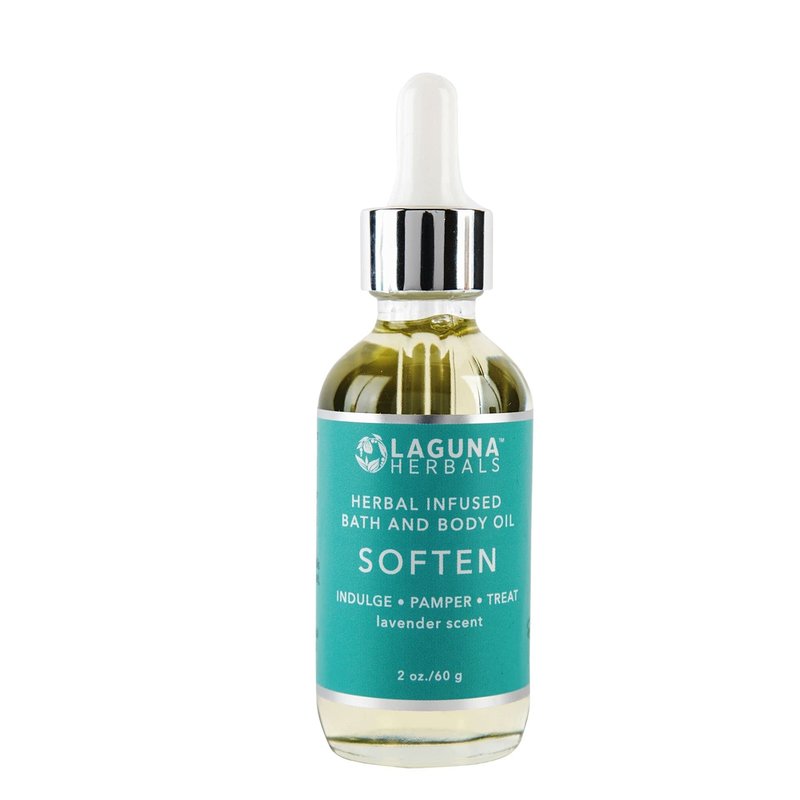 This aromatherapeutic body oil is crafted with lavender essential oil, known for its calming effects on both mind and body. This exquisite body oil is healing, moisturizing and softening for the skin. Our botanical blend of chamomile, rose and lavender buds adds skin loving anti-oxidants for skin health and healing. This organic beauty is easily absorbed for a soft dewy glow. Soften is made with 100% natural ingredients (no synthetics). So go ahead and indulge; add a few drops to your bathwater or apply to skin daily, Soften can even be dabbed onto pulse points to double as a synthetic free perfume.