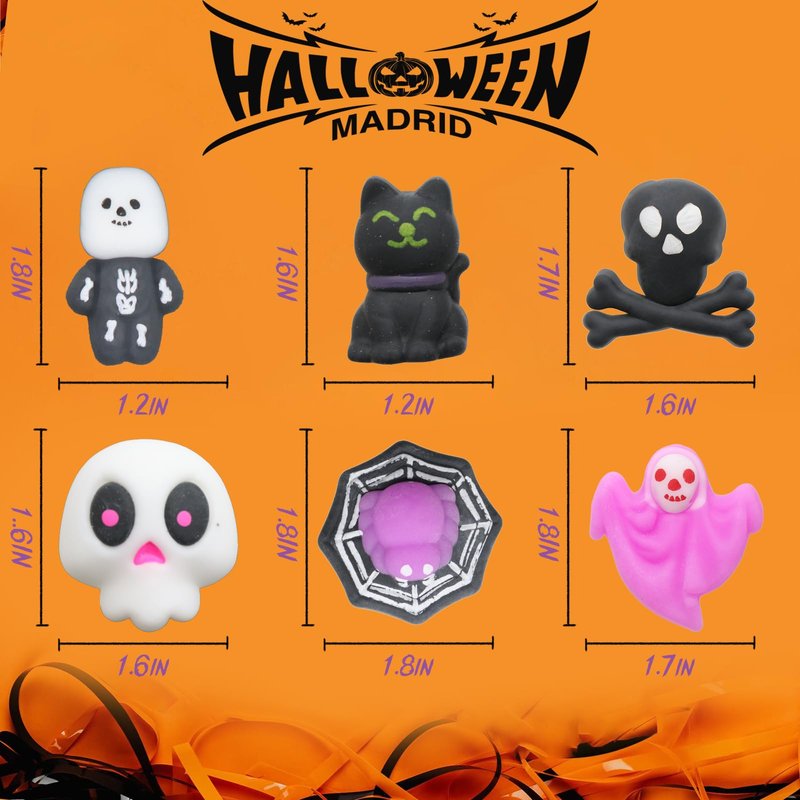 - 【Perfect Halloween Gifts】 The Halloween mochi squishys are perfect set for Halloween Decoration, Halloween Party, Halloween giveaways, Halloween prizes,Goodie bags,Halloween gift,Trick or Treat, Class Exchange,Halloween Miniature, Novelty Toys.