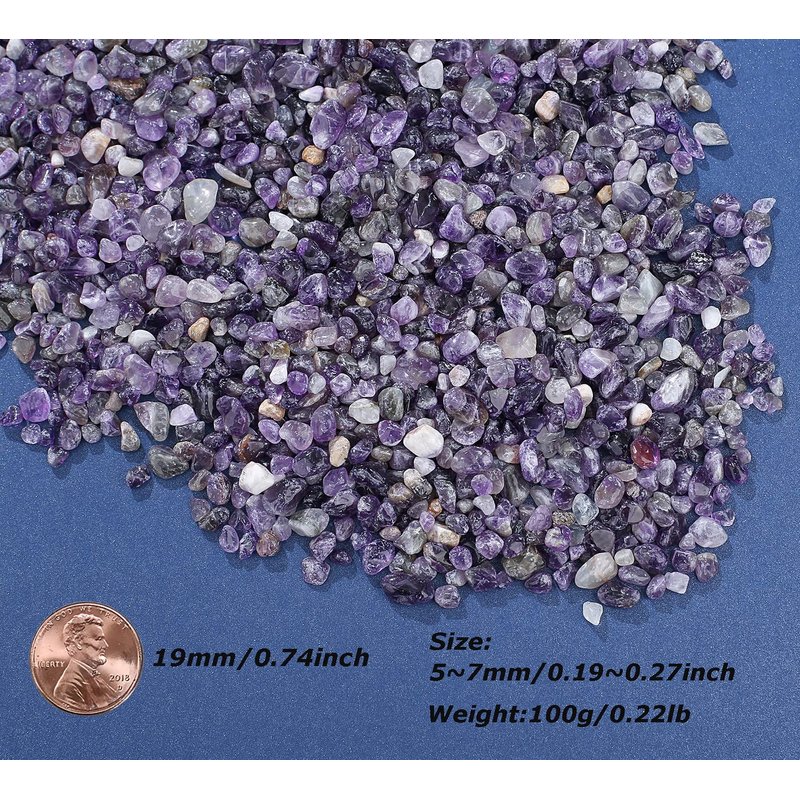 - 【Crystal Chips】: Natural crystals are screened, crushed, cleaned and polished,turn into mini crystals。 Crushed stone size: 0.19-0.27 inches, 1 bag weight: 100g/0.22 lbs.