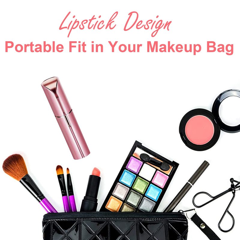 - [RECHARGEABLE AND PORTABLE LIPSTICK DESIGN] The facial hair trimmer is powered by 600mAh built-in battery, charge it via PC, power bank or wall charger, making electric facial hair removal as a perfect travel mini shaver, lipstick design fits comfortably in hand, slip the hair razor into your beauty kit, bag or purse easily