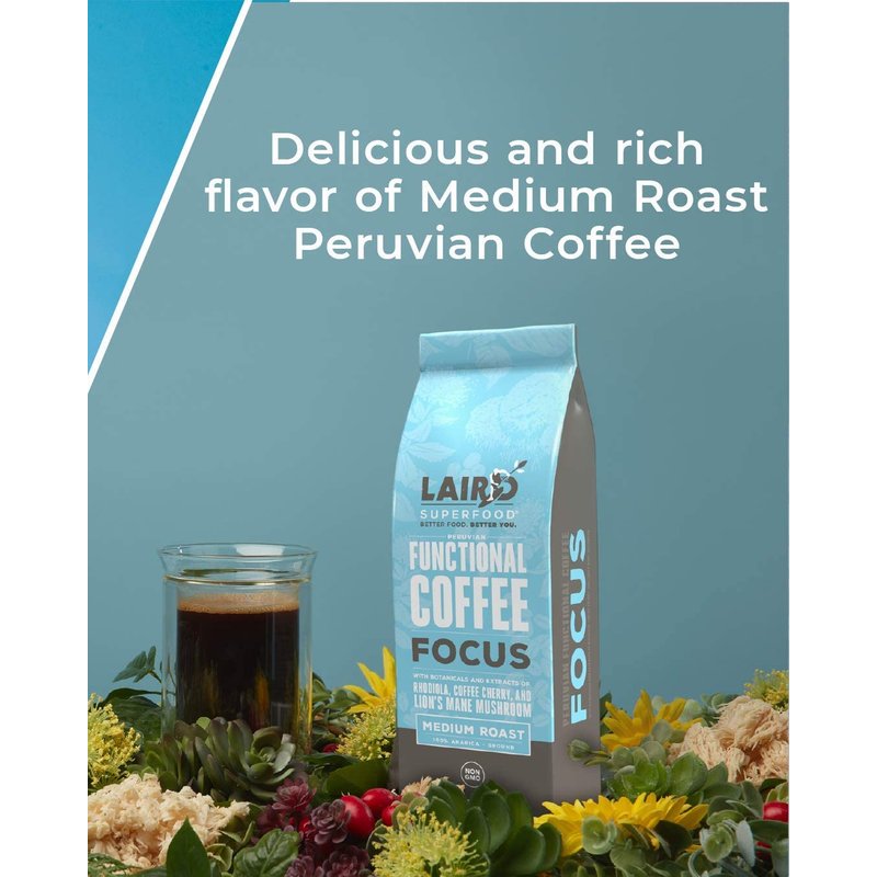 - PERUVIAN FUNCTIONAL COFFEE - Seize the day with our Focus Coffee! Blended with functional mushroom extracts and botanical adaptogens to invigorate you the plant-powered way