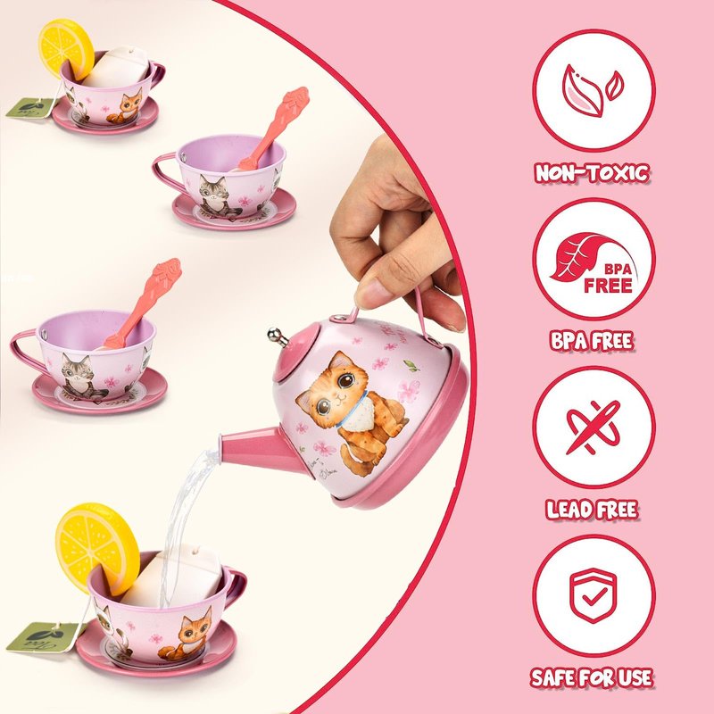 - 【Safe & Sturdy】Crafted from lead-free tin and BPA-free plastic, the Lajeje cat tea set guarantees durability and safety. Effortless to clean and maintain, your child can revel in tea parties galore. Ideal for birthdays, princess-themed extravaganzas, and heartwarming Christmas surprises.