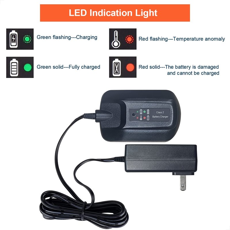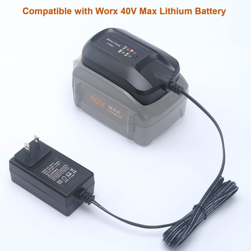 The LALAFO WA3747 replacement for Worx 40V lithium-ion battery charger, Compatible with Worx WA3580 battery and charges 40-volt batteries in about 8 hours. Perfect suit for 40V Max li-ion batteries of Worx 40V cordless tools: WG180 WG280 WG380 WG580 WG776.