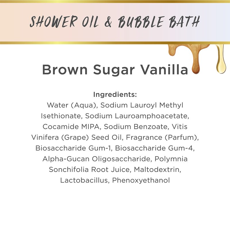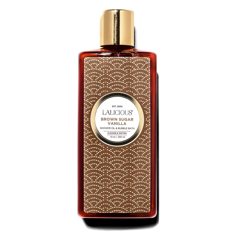 LaLicious Brown Sugar Vanilla Shower Oil & Bubble Bath - Shower Cleanser with Topical Probiotics & Grapeseed Oil, No Parabens (10oz)