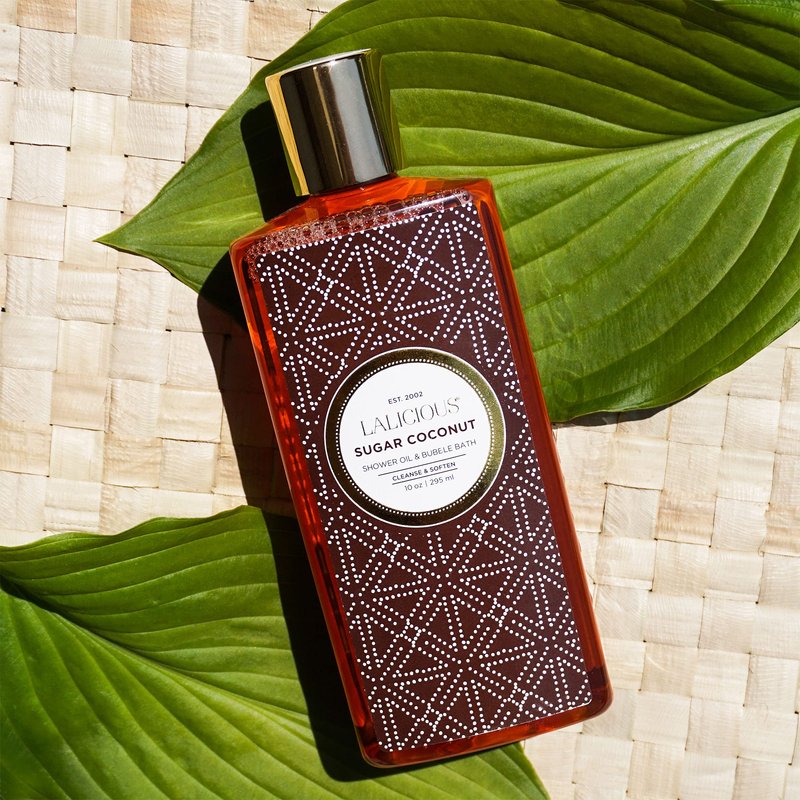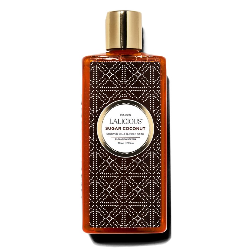 LaLicious Sugar Coconut Shower Oil & Bubble Bath - Natural Shower Cleanser with Topical Probiotics & Grapeseed Oil - Bath Soap Product for Shower, Bath & Shaving, No Parabens (10oz)