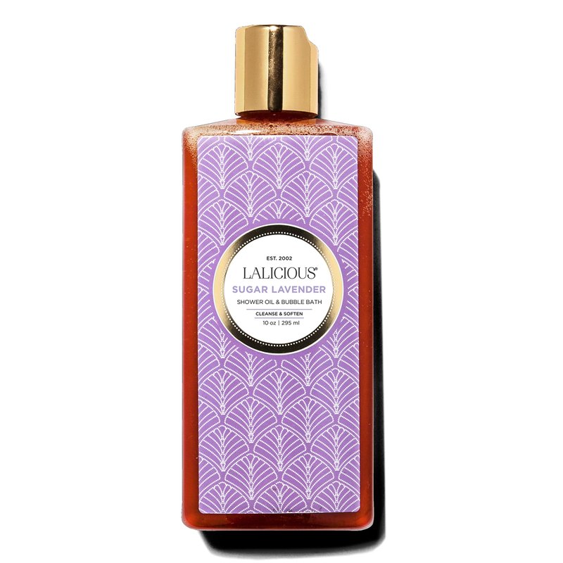 LaLicious Sugar Lavender Shower Oil & Bubble Bath - Natural Shower Cleanser with Topical Probiotics & Grapeseed Oil - Bath Soap Product for Shower, Bath & Shaving, No Parabens (10oz)