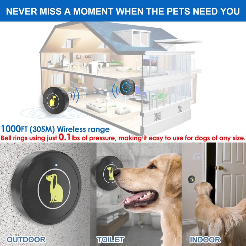 - 【Multi-Purpose】This dog doorbell is for training dog/pet learned to touch button when they want to go outside or back home instead of scratching barking and whining. It can also be used as a wireless door bell for a home or a care pager for the elderly/patient.