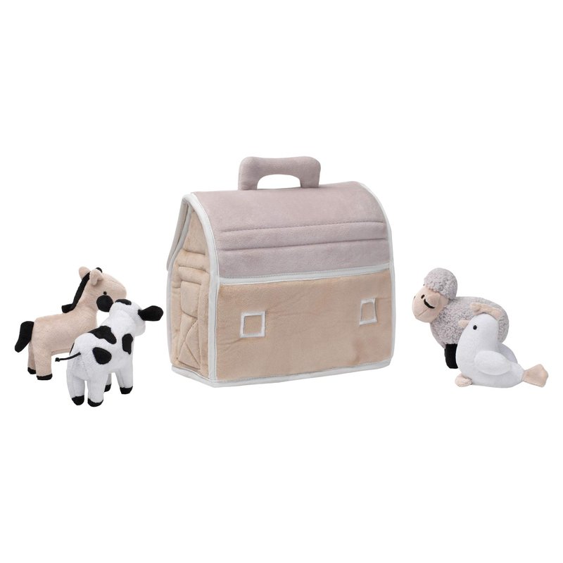 Lambs & Ivy Baby Farm Plush Barn with 4 Stuffed Animals Toy - Taupe/Gray/White