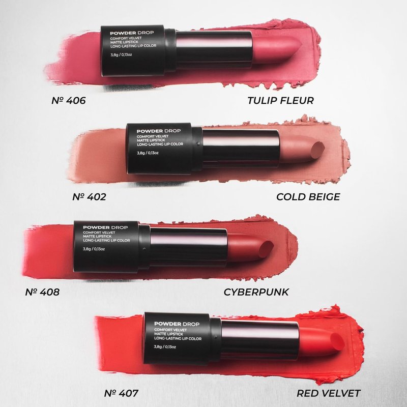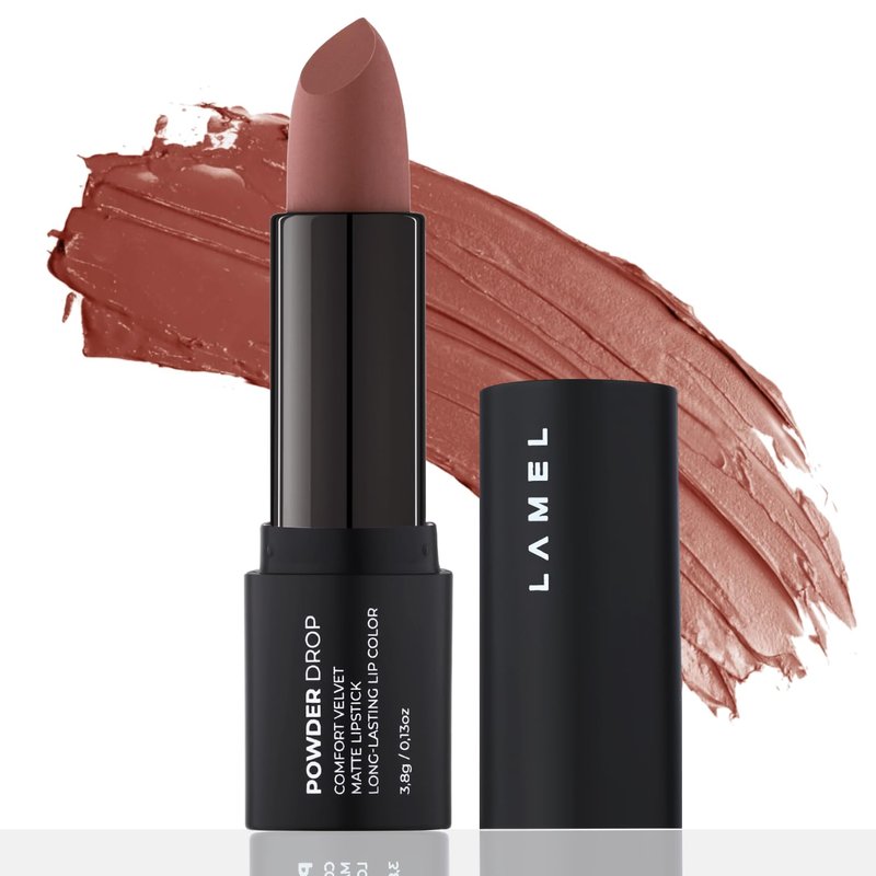 Discover the perfect blend of comfort and style with LAMEL Make Up's Powder Drop Matte Lipstick. This creamy matte formula is designed to deliver a comfortable wear without the tightness or dryness associated with traditional matte lipsticks. Elevate your makeup routine with this long-lasting beauty essential that offers a flawless finish. The noble shades not only accentuate the beauty of your lip shape but also feature unique pigments that securely lock in the color, ensuring a stunning look that lasts all day. Encased in a beautiful minimalist packaging, this lipstick is not just a makeup product; it's a fashion statement for your makeup bag or dressing table.