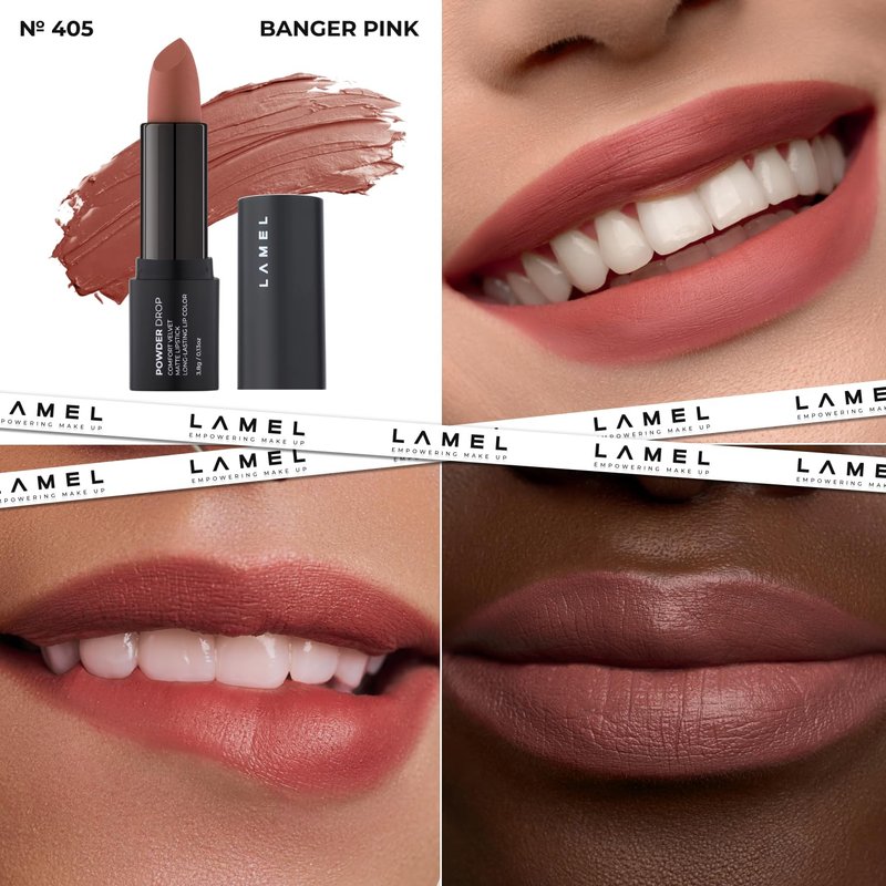 Lamel Powder Drop Lipstick – Long Lasting Matte Lipstick With Creamy & Hydrating Formula, Buildable Finish – Brown Lipstick – 405 Banger Pink