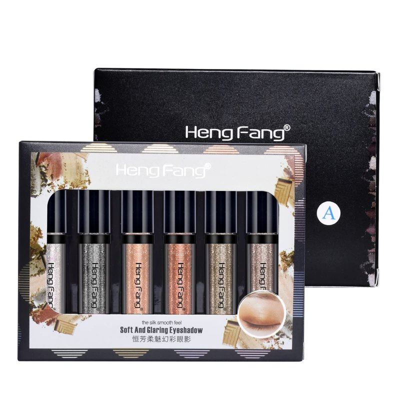 LAMUSELAND Glitter Liquid Eyeshadow, 6 Colors/set Shimmer Metallic Shiny High Pigmented Eyeshadow Pencil Set, Long Lasting Waterproof Sparkling Eye Makeup Tool for Women Girls (A)