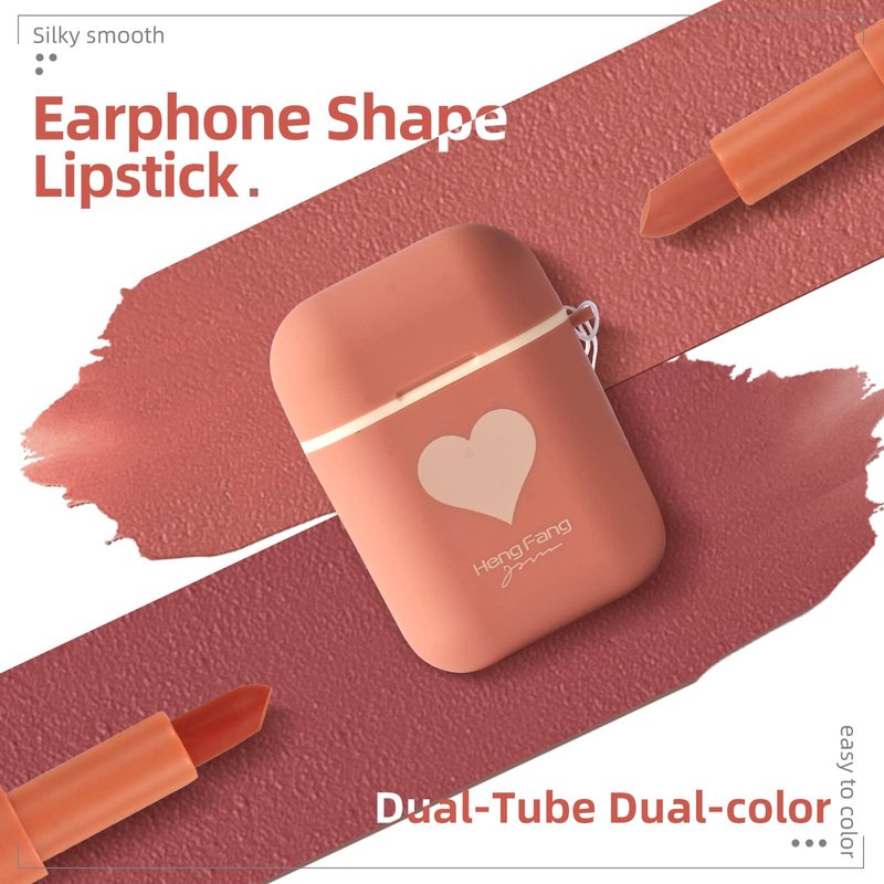 LAMUSELAND Matte Lipstick, 2Pc/Set Waterproof Long Lasting Moisturizing Lip Stain Earphone Dual-color Lip Gloss Primer, Non-stick Cup Lip Make Up Gift Kit for Girls (Red)