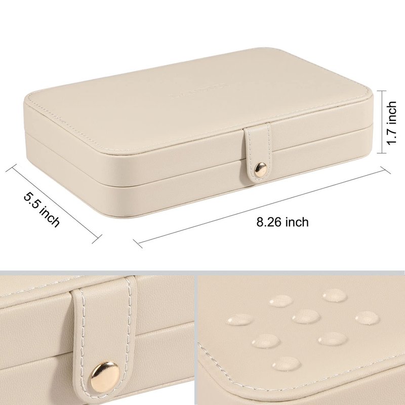 LANDICI Small Jewelry Box for Women Girls, PU Leather Travel Jewelry Organizer Case, Portable Jewellery Storage Holder Display for Ring Earrings Necklace Bracelet Bangle Watch Men Kids Gift, Apricot