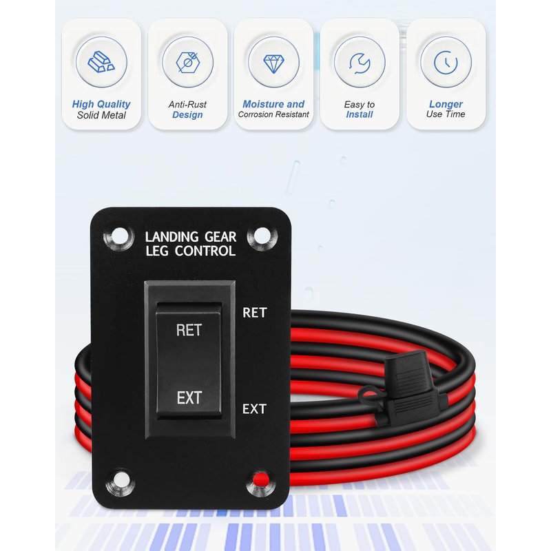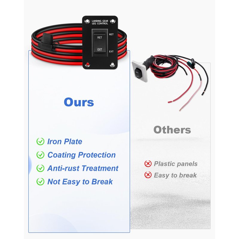 Landing Gear Replacement Switch Fit for 5th Wheel RVs and Trailers with Black Iron Panel and Anti-Rust Prevention, 10AWG 1.5m Long