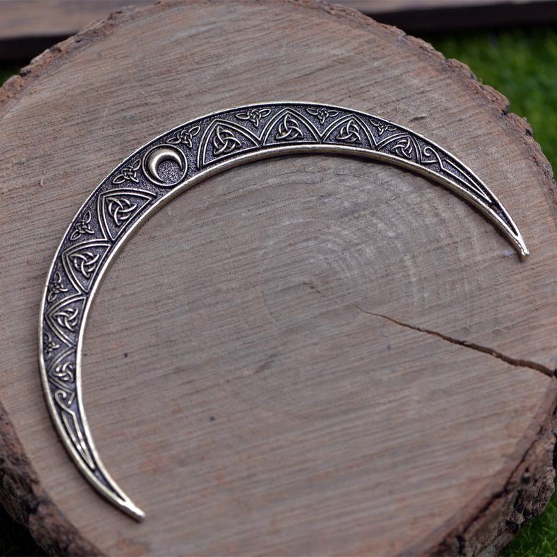 - Appearance Design: The width of the top ends of this Moon Crescent Hairpin is 10 centimeters, featuring a loose and comfortable design suitable for various hairstyles and occasions. It is adorned with Viking and Knot festival patterns, adding a unique cultural charm to the headpiece, making it more eye-catching and exquisite.