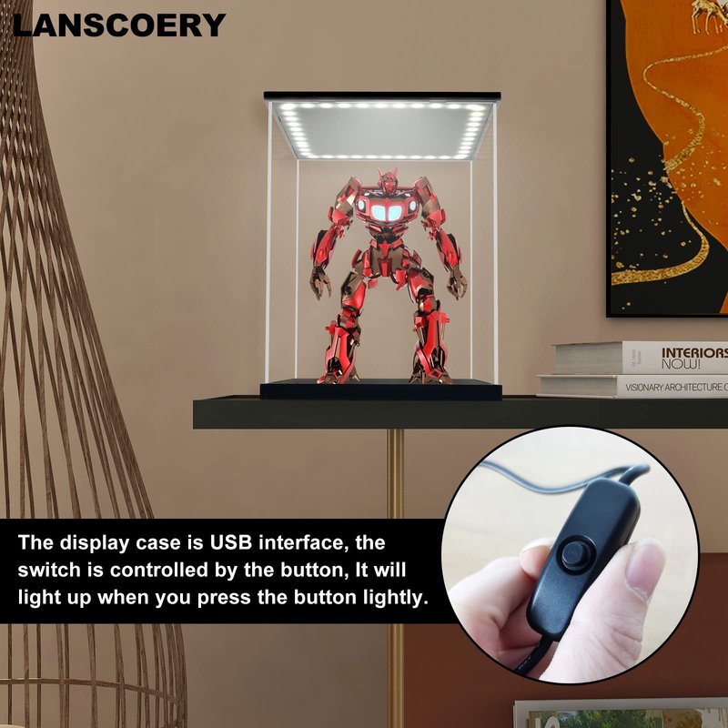 - Illuminate Your Display - Discover the allure of our acrylic case adorned with inviting bright white lights. After assembling, simply connect the USB interface, and watch as the top light transforms your showcase into a cozy and inviting haven.