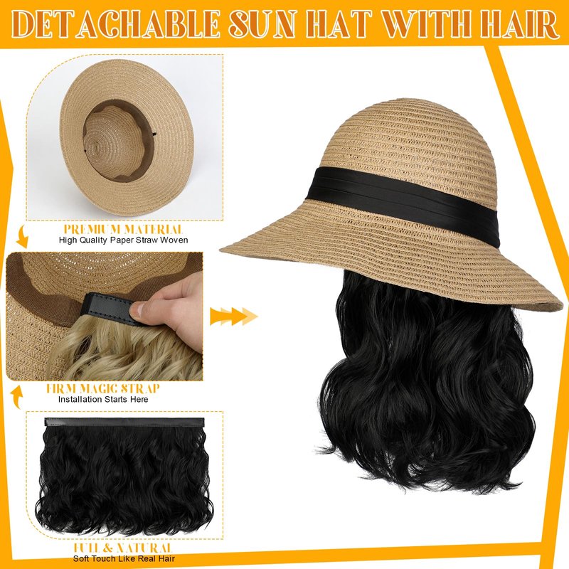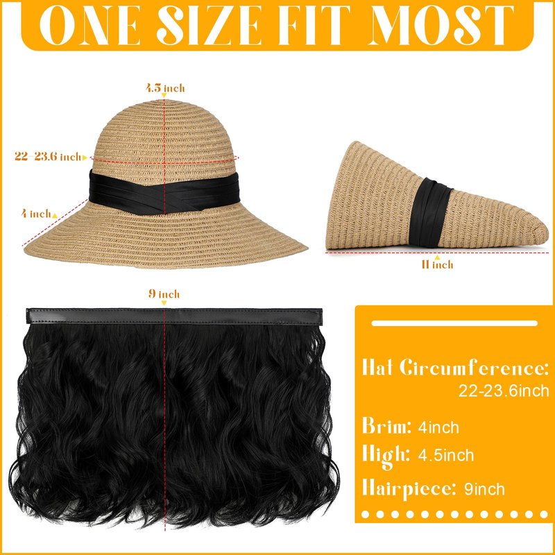 - đăFoldable and Packableă This straw summer sun hat wig is folded packable design for easy storage in a handbag or backpack when it is not in use,in this way you save lots of space,while still retaining its shape.Great for vacation,holidays,beach or pool,gardening and family gathering ect.Also,perfect for cancer patients and women with medical hair loss,it can make you confident and shining!