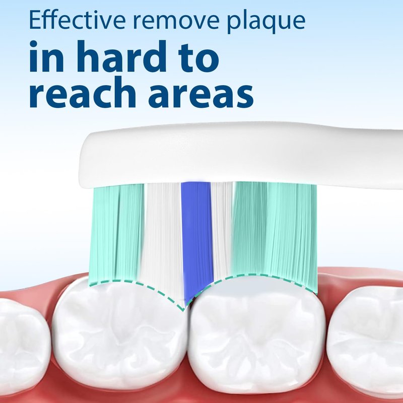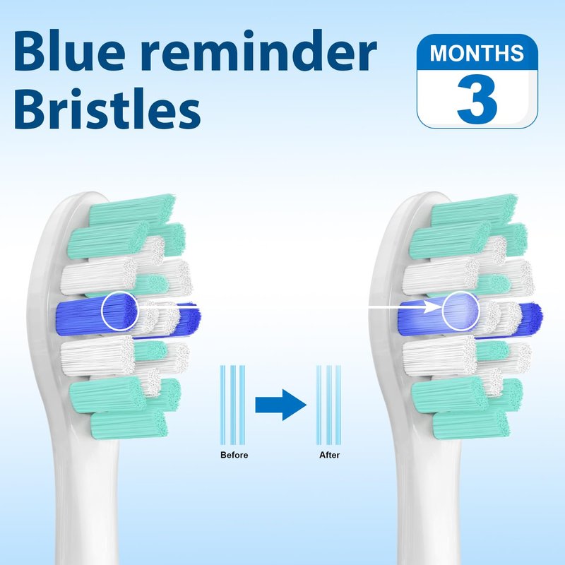 - PREMIUM DUPONT BRISTLES - The replacement heads are made of premium DuPont silk with rounded tips for gentler gum care. The DuPont bristles are soft and flexible for longer life. And with blue reminder bristles to remind you to replace the brush head that is gradually losing its cleaning effect in time, so that the cleaning effect is always online, bringing you a better dental cleaning experience.