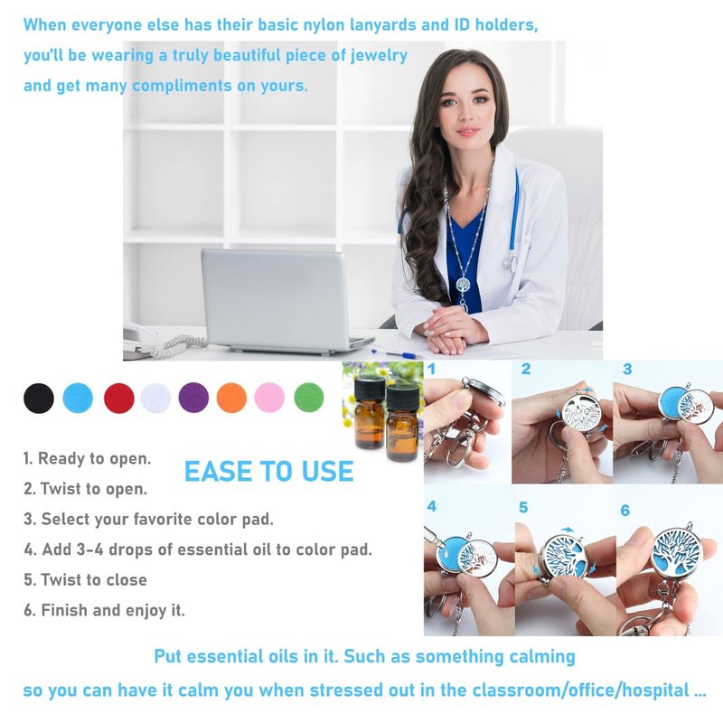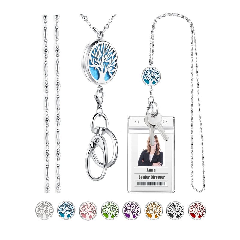 - 【Strong & Attractive Aromatherapy】 This diffuser lanyard necklace is very pretty yet strong with stainless steel non breakaway chain. It looks like a silver chain necklace, but works like a cute lanyard for Id badges or keys. It's a great way to add some formality to your outfit if you have to wear an ID visible badge every day. Meanwhile, it's also a simple but elegant essential oil necklace, you can keep your favorite oil close to you at all time to keep relax during your working.