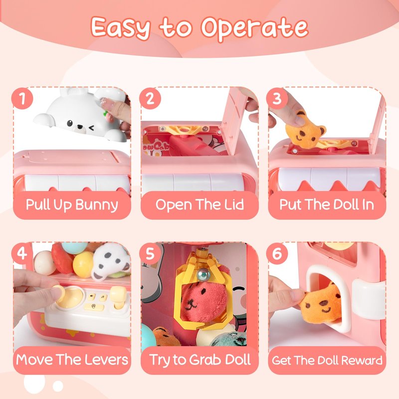 - What's Included: The mini claw machine comes with 10 cute plush toys and 10 capsule toys, and even features realistic music to create an authentic game atmosphere. Plus, you can adjust the volume or turn it off if you prefer. It's also perfect for use as a reward system to motivate kids.