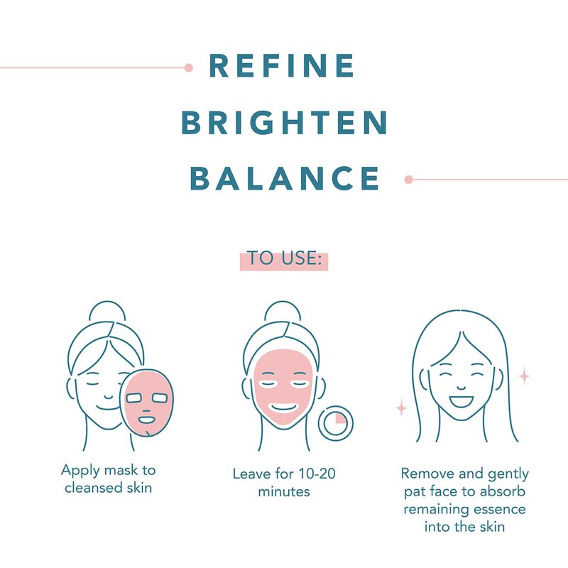 - HOW TO USE - After cleansing and toning, unfold a single sheet and gently spread over face avoiding the eye and mouth areas. Leave on for 10-20 minutes and remove mask, gently patting remaining serum until it is fully absorbed