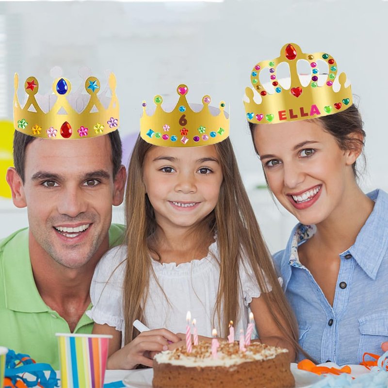 - Easy to Use : Simply insert the tip of one end of the paper crown into the slot of the other end, and the length can be changed according to the head size of boys and girls, so that the crown will be more comfortable to wear, while it also fits adults. You can choose your favorite gem sticker to put on the crown.