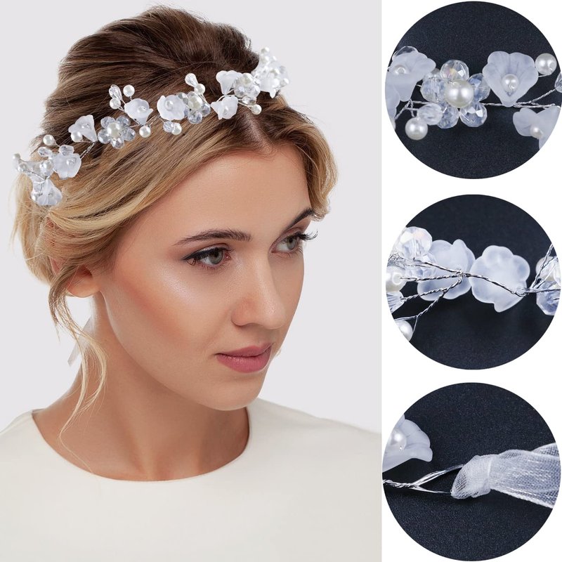 - [Material] Our flower headpieces are handmade of high-quality materials such as diamond pearl alloy, which is durable. The end is connected with ribbon, which is practical and beautiful.