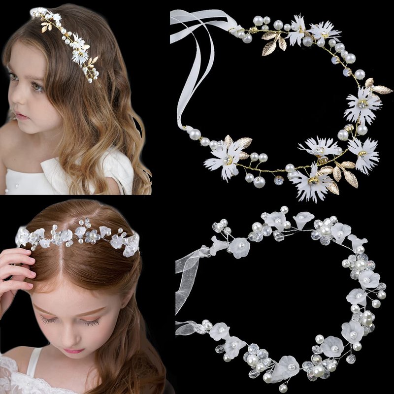 - [Elegant design] Stunning quality, the dedicated headpiece jewelry is made of Pearl, Flower, Rhinestone, Brass and Alloy. Makes you look glamorous, sweet, and attractive for any occasion like a real princess. The flower girl decorated with the elegant hair piece adds a pretty sparkle to the bridal party!