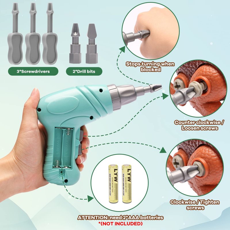 - 【Easy to Assemble Kids Toys】Our take apart toys package also contains 1 electric drill with 2 different drill bits, 3 pcs hand screwdrivers, and assemble instructions. Each step is explained clearly in the instructions in detail, and it is easy for kids to understand. The electric drill is low-speed, which can be rotated to tighten & loosen screws and encounter obstacle will automatically stop. Won't hurt the kids.