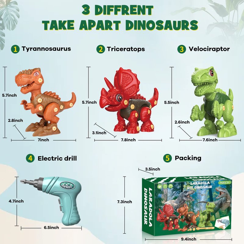 - 【High-Quality Dinosaur Toys】Made of high-quality, non-toxic and recyclable ABS plastic. The edges and corners have been specially treated, so you don't need to worry that the parts will scratch their hands during the assembly. Laradola kids toys for kids are sturdy, even if dropped from a high place, they will not break easily. It is the best choice for toddler toys.