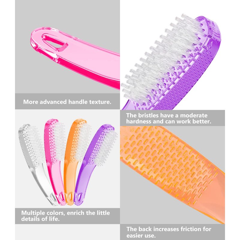 - 【High-Quality Material】: These nail brushes' handles are made of sturdy plastic which are not easy to bent. The bristles are made of flexible plastic, not too hard and not too soft which won't scratch your skin. Durable for long-term to use.